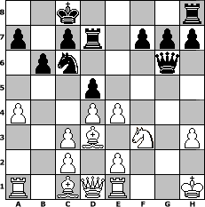 | Partie-Notation im PGN-Format [Event "Wrixum - Open die XIII"] [Site "www.mySchach.de"] [Date "2016.09.28"] [Round "1"] [White "Grubengeist"] [Black "shan"] [ECO "C15"] [WhitemyELO "1933"] [BlackmyELO "1625"] [Result "1-0"] [TimeControl "10/2592000"] [WhiteDays "28"] [BlackDays "30"] [MySchachNr "105044"] 1. e4 e6 2. d4 d5 3. Nc3 Bb4 4. exd5 exd5 5. Bd3 Bxc3+ 6. bxc3 Nf6 7. Ba3 Nc6 8. Nf3 b6 9. O-O Ne4 10. Re1 Bf5 11. Nd2 Qg5 12. f3 O-O-O 13. fxe4 Bg4 14. Nf3 Qf4 15. Bc1 Qd6 16. a4 Rd7 17. h3 Bxh3 18. gxh3 Qg6+ 19. Kh1 1-0 Stellungs-Notation im FEN-Format 2k4r/p1pr1ppp/1pn3q1/3p4/P2PP3/2PB1N1P/2P1P3/R1BQR2K - - - 2 19 Geschlagene Figuren Weiss:                              Geschlagene Figuren Schwarz:                               Klicken Sie auf eine geschlagene Figur um den gewünschten Zug darzustellen!