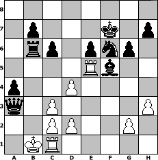 Partie-Notation im PGN-Format [Event "Mal wieder Blackmar-Diemer-Gambit"] [Site "www.mySchach.de"] [Date "2023.04.18"] [Round "1"] [White "Achimkogge"] [Black "alibengali"] [ECO "D00"] [WhitemyELO "1293"] [BlackmyELO "1648"] [Result "0-1"] [TimeControl "10/1728000"] [WhiteDays "57"] [BlackDays "58"] [MySchachNr "129852"] 1. d4 d5 2. e4 dxe4 3. Nc3 Nf6 4. f3 exf3 5. Nxf3 g6 6. Bc4 Bg7 7. Ng5 O-O 8. Be3 Bg4 9. Qd3 Bf5 10. Bxf7+ Rxf7 11. Qc4 e6 12. Nxf7 Kxf7 13. O-O-O Nbd7 14. Rhf1 Nb6 15. Qb3 c6 16. Bg5 a5 17. Kb1 a4 18. Qb4 Bf8 19. h3 Bxb4 20. a3 Bxc3 21. bxc3 Qd6 22. Bc1 Nc4 23. Rfe1 Nxa3+ 24. Bxa3 Qxa3 25. Rc1 Ra6 26. Re5 Rb6+ 0-1 Stellungs-Notation im FEN-Format 8/1p3k1p/1rp1pnp1/4Rb2/p2P4/q1P4P/2PP2P1/1KR5 - - - 4 27 Geschlagene Figuren Weiss: Geschlagene Figuren Schwarz: Klicken Sie auf eine geschlagene Figur um den gewünschten Zug darzustellen!