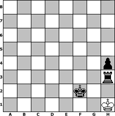 Partie eroeffnet am 03.02.2005, 00:13 Uhr und beendet am 03.03.2005, 18:56 Uhr Spieler weiss: rikilatic Spieler schwarz: Festungsschach Festungsschach hat die Partie gewonnen! | |