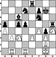 Partie-Notation im PGN-Format [Event "Bremer Schl"] [Site "www.mySchach.de"] [Date "2008.11.01"] [Round "1"] [White "Phantasos"] [Black "muetoe"] [ECO "A46"] [WhitemyELO "2124"] [BlackmyELO "1940"] [Result "0-1"] [TimeControl "10/2592000"] [WhiteDays "000"] [BlackDays "114"] [MySchachNr "49398"] 1. d4 Nf6 2. Nf3 e6 3. c4 b6 4. g3 Ba6 5. b3 Bb4+ 6. Bd2 Bxd2+ 7. Qxd2 c5 8. Bg2 d5 9. dxc5 bxc5 10. cxd5 exd5 11. Qe3+ Qe7 12. Qxe7+ Kxe7 13. Nc3 Nbd7 14. Nh4 Ke6 15. Rd1 Nb6 16. a4 g5 17. Bh3+ g4 18. Bg2 Bb7 19. h3 h5 20. e3 Rhg8 21. Rc1 Rac8 22. hxg4 hxg4 23. Ne2 Rg5 24. f4 Rh5 25. Kf2 Ke7 26. Nc3 a5 27. Rhd1 Bc6 28. Rd2 Rb8 29. Rcd1 Kf8 30. Kg1 Kg7 31. Rc1 Nbd7 32. Rb1 Rb6 33. Rdd1 Rb4 34. Na2 Rb8 35. Nc3 Re8 0-1 Stellungs-Notation im FEN-Format 4r3/3n1pk1/2b2n2/p1pp3r/P4PpN/1PN1P1P1/6B1/1R1R2K1 - - - 18 36 Geschlagene Figuren Weiss: Geschlagene Figuren Schwarz: Klicken Sie auf eine geschlagene Figur um den gewünschten Zug darzustellen!
