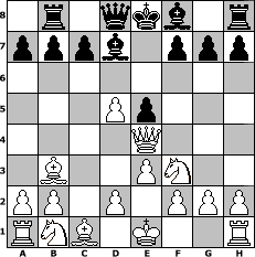 Partie-Notation im PGN-Format [Event "Trotz Sturm und Regen die Figuren bewegen II"] [Site "www.mySchach.de"] [Date "2025.08.15"] [Round "1"] [White "jeremyt"] [Black "Hobbykegler"] [ECO "D25"] [WhitemyELO "2105"] [BlackmyELO "1016"] [Result "1-0"] [TimeControl "10/2592000"] [WhiteDays "49"] [BlackDays "41"] [MySchachNr "133601"] 1. d4 d5 2. c4 dxc4 3. Nf3 Nf6 4. e3 Ne4 5. Bxc4 Nc6 6. d5 Nb4 7. Qa4+ Bd7 8. Qxb4 Rb8 9. Bb3 e5 10. Qxe4 1-0 Stellungs-Notation im FEN-Format 1r1qkb1r/pppb1ppp/8/3Pp3/4Q3/1B2PN2/PP1P1PPP/RNB1K2R - KQk - 0 10 Geschlagene Figuren Weiss: ![]() ![]() ![]() ![]() ![]() ![]() ![]() ![]() ![]() ![]() ![]() ![]() ![]() ![]() ![]() Geschlagene Figuren Schwarz: ![]() ![]() ![]() ![]() ![]() ![]() ![]() ![]() ![]() ![]() ![]() ![]() ![]() ![]() ![]() Klicken Sie auf eine geschlagene Figur um den gewünschten Zug darzustellen!