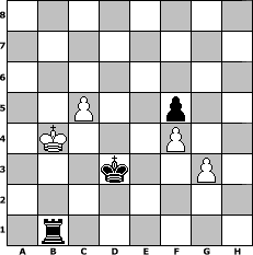 Partie-Notation im PGN-Format [Event "Mannschaftsturnier der letzen Mohikan3er"] [Site "www.mySchach.de"] [Date "2018.06.01"] [Round "1"] [White "alibengali"] [Black "Cuibono"] [ECO "B00"] [WhitemyELO "1729"] [BlackmyELO "2269"] [Result "0-1"] [TimeControl "10/2592000"] [WhiteDays "141"] [BlackDays "171"] [MySchachNr "112271"] 1. e4 Nc6 2. Nf3 f5 3. exf5 d5 4. Bb5 Bxf5 5. Ne5 Qd6 6. d4 Nf6 7. O-O Nd7 8. Bf4 Ncxe5 9. Bxe5 Qb4 10. Bxd7+ Kxd7 11. Qf3 e6 12. Nc3 c6 13. a3 Qe7 14. Rac1 Qg5 15. Ne2 Be4 16. Qf7+ Be7 17. Ng3 Rhf8 18. Nxe4 Rxf7 19. Nxg5 Bxg5 20. f4 Bf6 21. Bxf6 gxf6 22. g3 Kd6 23. c3 h5 24. Kg2 a5 25. Kf3 f5 26. Ke3 h4 27. Rh1 Rh8 28. Kf3 a4 29. Rcd1 Rfh7 30. Rhg1 hxg3 31. hxg3 Rh3 32. Rd2 b6 33. Rdg2 c5 34. Ke3 Kc6 35. Kd3 Rg8 36. Ke3 Kb5 37. Kd3 Rg6 38. Ke3 Kc4 39. dxc5 bxc5 40. Kd2 Rgh6 41. Kc2 Rh2 42. Kd2 Kb3 43. Ke3 Rxg2 44. Rxg2 Rh1 45. Re2 Rb1 46. Kd3 Rxb2 47. Rxe6 Kxa3 48. Re5 Kb3 49. Rxd5 c4+ 50. Ke3 a3 51. Ra5 a2 52. Kd4 Rb1 53. Rxa2 Rd1+ 54. Kc5 Kxa2 55. Kxc4 Kb2 56. Kb4 Kc2 57. c4 Kd3 58. c5 Rb1+ 0-1 Stellungs-Notation im FEN-Format 8/8/8/2P2p2/1K3P2/3k2P1/8/1r6 - - - 1 59 Geschlagene Figuren Weiss: Geschlagene Figuren Schwarz: Klicken Sie auf eine geschlagene Figur um den gewünschten Zug darzustellen!