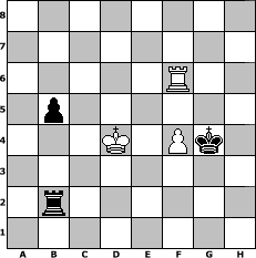 Partie-Notation im PGN-Format [Event "wie w"] [Site "www.mySchach.de"] [Date "2013.11.16"] [Round "1"] [White "Vahl1"] [Black "Joschi"] [ECO "A16"] [WhitemyELO "1667"] [BlackmyELO "1574"] [Result "1/2-1/2"] [TimeControl "10/1728000"] [WhiteDays "20"] [BlackDays "20"] [MySchachNr "91113"] 1. c4 Nf6 2. Nc3 c5 3. g3 Nc6 4. Bg2 e6 5. Nf3 d5 6. cxd5 exd5 7. d4 Be6 8. Qb3 b6 9. Bg5 Be7 10. Qd1 h6 11. Bxf6 Bxf6 12. e3 O-O 13. O-O Qd7 14. a3 Rad8 15. Re1 Bg4 16. Qd3 c4 17. Qd2 Qf5 18. e4 dxe4 19. Rxe4 Bxf3 20. Rf4 Bg5 21. Rxf5 Bxd2 22. Bxf3 Nxd4 23. Bg4 Nxf5 24. Bxf5 Bxc3 25. bxc3 Rd5 26. Be4 Re5 27. f3 f5 28. Bc6 Rc8 29. f4 Re3 30. Bd7 Rc7 31. Bxf5 Rxc3 32. a4 Re3 33. Kf2 Ree7 34. h4 c3 35. Rc1 Rc5 36. Bc2 a6 37. Rd1 b5 38. axb5 axb5 39. Rd8+ Kf7 40. Bb3+ Kg6 41. Rd6+ Kf5 42. Kf3 Re3+ 43. Kxe3 c2 44. Bxc2+ Rxc2 45. Rb6 Rb2 46. Rb7 g6 47. Kd4 Kg4 48. Rg7 Kxg3 49. Rxg6+ Kxh4 50. Rxh6+ Kg4 51. Rf6 1/2-1/2 Stellungs-Notation im FEN-Format 8/8/5R2/1p6/3K1Pk1/8/1r6/8 - - - 2 51 Geschlagene Figuren Weiss: Geschlagene Figuren Schwarz: Klicken Sie auf eine geschlagene Figur um den gewünschten Zug darzustellen!