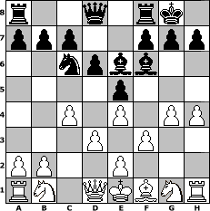 Partie-Notation im PGN-Format [Event "unter uns Nr. 58"] [Site "www.mySchach.de"] [Date "2025.10.15"] [Round "1"] [White "Andreas1954"] [Black "Master1"] [ECO "C20"] [WhitemyELO "1160"] [BlackmyELO "1415"] [Result "0-1"] [TimeControl "10/864000"] [WhiteDays "00"] [BlackDays "05"] [MySchachNr "133770"] 1. e4 e5 2. f3 d6 3. d3 Be6 4. c4 Nc6 5. h4 Nf6 6. Bg5 Be7 7. Bxf6 Bxf6 8. g4 O-O 0-1 Stellungs-Notation im FEN-Format r2q1rk1/ppp2ppp/2npbb2/4p3/2P1P1PP/3P1P2/PP2P3/RN1QKBNR - KQ - 1 9 Geschlagene Figuren Weiss: Geschlagene Figuren Schwarz: Klicken Sie auf eine geschlagene Figur um den gewünschten Zug darzustellen!