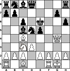 | Partie-Notation im PGN-Format [Event "Wrixum - Open die XIII"] [Site "www.mySchach.de"] [Date "2016.09.28"] [Round "1"] [White "Ziegert"] [Black "reisinger"] [ECO "C41"] [WhitemyELO "1490"] [BlackmyELO "1474"] [Result "1-0"] [TimeControl "10/2592000"] [WhiteDays "30"] [BlackDays "30"] [MySchachNr "105089"] 1. e4 e5 2. Nf3 d6 3. Bc4 Nf6 4. Ng5 d5 5. exd5 Nxd5 6. d3 h6 7. Nxf7 Kxf7 8. Qf3+ Ke6 9. O-O Bc5 10. Nc3 c6 11. Qg4+ 1-0 Stellungs-Notation im FEN-Format rnbq3r/pp4p1/2p1k2p/2bnp3/2B3Q1/2NP4/PPP1PPPP/R1B2RK1 - - - 1 11 Geschlagene Figuren Weiss:                              Geschlagene Figuren Schwarz:                               Klicken Sie auf eine geschlagene Figur um den gewünschten Zug darzustellen!