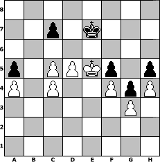 Partie-Notation im PGN-Format [Event "Skandinavisches Turnier"] [Site "www.mySchach.de"] [Date "2013.05.06"] [Round "1"] [White "Wulfen49"] [Black "Master1"] [ECO "B01"] [WhitemyELO "1281"] [BlackmyELO "1279"] [Result "1-0"] [TimeControl "10/2592000"] [WhiteDays "116"] [BlackDays "112"] [MySchachNr "88159"] 1. e4 d5 2. exd5 Qxd5 3. Nc3 Qd8 4. Be2 Nf6 5. Nf3 Nc6 6. O-O e5 7. Bb5 Bd6 8. Re1 Bd7 9. d3 O-O 10. Ne4 a6 11. Bxc6 Bxc6 12. Bg5 Be7 13. Nxe5 Nxe4 14. Bxe7 Qxe7 15. Nxc6 bxc6 16. Rxe4 Qd7 17. Qf3 Rfe8 18. Rae1 Rxe4 19. Rxe4 Re8 20. Qe3 Rxe4 21. Qxe4 h6 22. c4 f5 23. Qe3 Kf7 24. d4 Qe6 25. Qxe6+ Kxe6 26. b4 g5 27. f3 h5 28. g3 Kd6 29. h3 Ke6 30. a4 c5 31. d5+ Ke5 32. bxc5 a5 33. Kf2 Kf6 34. f4 g4 35. h4 Ke7 36. Ke3 Kd7 37. Kd4 Ke7 38. Ke5 1-0 Stellungs-Notation im FEN-Format 8/2p1k3/8/p1PPKp1p/P1P2PpP/6P1/8/8 - - - 6 38 Geschlagene Figuren Weiss: Geschlagene Figuren Schwarz: Klicken Sie auf eine geschlagene Figur um den gewünschten Zug darzustellen!