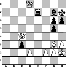 Partie-Notation im PGN-Format [Event "Herbstturnier 2018"] [Site "www.mySchach.de"] [Date "2018.09.17"] [Round "1"] [White "alibengali"] [Black "Achimkogge"] [ECO "D06"] [WhitemyELO "1644"] [BlackmyELO "1413"] [Result "1-0"] [TimeControl "10/1728000"] [WhiteDays "79"] [BlackDays "78"] [MySchachNr "113071"] 1. d4 d5 2. c4 c5 3. cxd5 c4 4. e4 b5 5. Nc3 a6 6. Nf3 Bg4 7. h3 Bh5 8. Be2 Nf6 9. O-O h6 10. b4 g5 11. Ne5 Bxe2 12. Qxe2 Bg7 13. a4 Qb6 14. Be3 O-O 15. axb5 Nfd7 16. Nxc4 Qg6 17. bxa6 Nxa6 18. b5 Nc7 19. b6 Na6 20. b7 Rab8 21. Rfb1 Rfe8 22. Na5 e5 23. Nc6 exd4 24. Rxa6 dxc3 25. Ne7+ Rxe7 26. Rxg6 fxg6 27. Ba7 Rbe8 28. b8=Q Nxb8 29. Rxb8 Rxb8 30. Bxb8 Rb7 31. Bg3 Rb2 32. Qc4 Kh7 33. d6 Rb7 34. e5 Rd7 35. e6 Rb7 36. e7 Rb1+ 37. Kh2 Re1 38. d7 Rxe7 39. d8=Q 1-0 Stellungs-Notation im FEN-Format 3Q4/4r1bk/6pp/6p1/2Q5/2p3BP/3P1PPK/8 - - - 0 39 Geschlagene Figuren Weiss: Geschlagene Figuren Schwarz: Klicken Sie auf eine geschlagene Figur um den gewünschten Zug darzustellen!