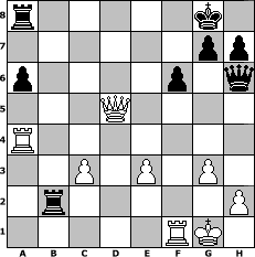 Partie-Notation im PGN-Format [Event "April 2018"] [Site "www.mySchach.de"] [Date "2018.04.11"] [Round "1"] [White "Achimkogge"] [Black "Steffi"] [ECO "D00"] [WhitemyELO "1378"] [BlackmyELO "1557"] [Result "1-0"] [TimeControl "10/1728000"] [WhiteDays "59"] [BlackDays "49"] [MySchachNr "111954"] 1. d4 d5 2. c3 Bf5 3. Bf4 e6 4. Nd2 c5 5. e3 Nc6 6. Bb5 a6 7. Bxc6+ bxc6 8. Qa4 Qd7 9. Ngf3 Bd3 10. Ne5 Bb5 11. Qc2 Qb7 12. dxc5 Bxc5 13. a4 f6 14. Nb3 Bxa4 15. Rxa4 Bd6 16. Nxc6 Qxc6 17. Nd4 Qd7 18. Bxd6 Qxd6 19. Qb3 Ne7 20. O-O O-O 21. f4 Rfb8 22. Qc2 e5 23. Nf5 Nxf5 24. Qxf5 Rxb2 25. fxe5 Qxe5 26. Qd3 Qg5 27. g3 Qh6 28. Qxd5+ 1-0 Stellungs-Notation im FEN-Format r5k1/6pp/p4p1q/3Q4/R7/2P1P1P1/1r5P/5RK1 - - - 0 28 Geschlagene Figuren Weiss: ![]() ![]() ![]() ![]() ![]() ![]() ![]() ![]() ![]() ![]() ![]() ![]() ![]() ![]() ![]() Geschlagene Figuren Schwarz: ![]() ![]() ![]() ![]() ![]() ![]() ![]() ![]() ![]() ![]() ![]() ![]() ![]() ![]() ![]() Klicken Sie auf eine geschlagene Figur um den gewünschten Zug darzustellen!
