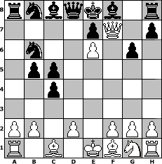 Partie-Notation im PGN-Format [Event "Auf`s Neue Jahr 2018"] [Site "www.mySchach.de"] [Date "2018.01.06"] [Round "1"] [White "Steffi"] [Black "Ziegert"] [ECO "D20"] [WhitemyELO "1521"] [BlackmyELO "1590"] [Result "1-0"] [TimeControl "10/2592000"] [WhiteDays "35"] [BlackDays "38"] [MySchachNr "110951"] 1. d4 d5 2. c4 dxc4 3. Nc3 Nf6 4. e4 c5 5. d5 b5 6. e5 Nfd7 7. e6 fxe6 8. Nxb5 a6 9. dxe6 axb5 10. Qh5+ g6 11. Qf3 Nb6 12. Qf7# 1-0 Stellungs-Notation im FEN-Format rnbqkb1r/4pQ1p/1n2P1p1/1pp5/2p5/8/PP1P1PPP/R1B1KBNR - KQkq - 3 12 Geschlagene Figuren Weiss: Geschlagene Figuren Schwarz: Klicken Sie auf eine geschlagene Figur um den gewünschten Zug darzustellen!