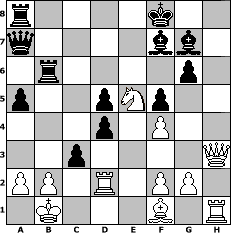 Partie-Notation im PGN-Format [Event "Der Mai ist gekommen"] [Site "www.mySchach.de"] [Date "2007.05.05"] [Round "1"] [White "HenrySchinasky"] [Black "GIM1961"] [ECO "D02"] [WhitemyELO "1826"] [BlackmyELO "2034"] [Result "0-1"] [TimeControl "10/2592000"] [WhiteDays "88"] [BlackDays "74"] [MySchachNr "34540"] 1. d4 d5 2. Nf3 Nc6 3. Bf4 Nf6 4. e3 Nh5 5. Ne5 Nxf4 6. exf4 Qd6 7. c3 g6 8. Qf3 Bg7 9. Nd2 f6 10. Nxc6 Qxc6 11. O-O-O O-O 12. h4 e5 13. h5 exd4 14. c4 Be6 15. hxg6 hxg6 16. Nb3 f5 17. c5 a5 18. Kb1 Bf7 19. Nc1 b6 20. cxb6 Qxb6 21. Qb3 Qa7 22. Qh3 Rfb8 23. Nd3 c5 24. Qh7+ Kf8 25. Ne5 c4 26. Rd2 Rb6 27. Qh3 c3 0-1 Stellungs-Notation im FEN-Format r4k2/q4bb1/1r4p1/p2pNp2/3p1P2/2p4Q/PP1R1PP1/1K3B1R - - - 0 28 Geschlagene Figuren Weiss: Geschlagene Figuren Schwarz: Klicken Sie auf eine geschlagene Figur um den gewünschten Zug darzustellen!