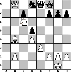 Partie-Notation im PGN-Format [Event "Spa"] [Site "www.mySchach.de"] [Date "2010.05.28"] [Round "1"] [White "bluescreenlover"] [Black "paul"] [ECO "D04"] [WhitemyELO "1301"] [BlackmyELO "1279"] [Result "1-0"] [TimeControl "10/2592000"] [WhiteDays "28"] [BlackDays "23"] [MySchachNr "65785"] 1. d4 d5 2. Nf3 Nf6 3. e3 Nc6 4. c4 e6 5. Nc3 Bb4 6. Bd2 O-O 7. Bd3 dxc4 8. Bxc4 Qe7 9. a3 Bxc3 10. Bxc3 a6 11. O-O b5 12. Ba2 b4 13. axb4 Rd8 14. Qa4 Bb7 15. b5 axb5 16. Qxb5 Nd5 17. Qxb7 Qd6 18. Bxd5 Rxa1 19. Rxa1 exd5 20. Ra8 Rxa8 21. Qxa8+ Nd8 22. Qb8 Qd7 23. Ne5 Qe8 24. Nc6 Kf8 25. Bb4+ 1-0 Stellungs-Notation im FEN-Format 1Q1nqk2/2p2ppp/2N5/3p4/1B1P4/4P3/1P3PPP/6K1 - - - 8 25 Geschlagene Figuren Weiss: Geschlagene Figuren Schwarz: Klicken Sie auf eine geschlagene Figur um den gewünschten Zug darzustellen!