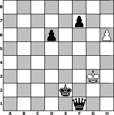 Partie-Notation im PGN-Format [Event "August ohne Regen"] [Site "www.mySchach.de"] [Date "2014.08.20"] [Round "1"] [White "Gauss1233"] [Black "espero"] [ECO "A68"] [WhitemyELO "1421"] [BlackmyELO "1742"] [Result "0-1"] [TimeControl "10/3456000"] [WhiteDays "195"] [BlackDays "234"] [MySchachNr "95492"] 1. d4 Nf6 2. c4 c5 3. d5 e6 4. Nc3 exd5 5. cxd5 d6 6. e4 g6 7. f4 Bg7 8. Nf3 O-O 9. Be2 Bg4 10. O-O Nbd7 11. a3 b5 12. Bxb5 Rb8 13. Qd3 Bxf3 14. Qxf3 Nxe4 15. Qxe4 Bxc3 16. Bxd7 Bd4+ 17. Kh1 Qxd7 18. Rb1 Rfe8 19. Qc2 Qf5 20. Qxf5 gxf5 21. b4 a5 22. Bd2 Re2 23. Rfd1 cxb4 24. axb4 a4 25. Bc1 Rb5 26. Ba3 Bf6 27. Kg1 Re3 28. Bc1 Rb3 29. Rxb3 axb3 30. Rd2 Rxb4 31. Bb2 Bxb2 32. Rxb2 Rxf4 33. Rxb3 Rd4 34. Rb5 Kg7 35. Kf2 Kf6 36. Ke3 Rg4 37. Kf3 Ke5 38. h3 Rf4+ 39. Kg3 h5 40. Ra5 h4+ 41. Kh2 Rd4 42. Kg1 Rxd5 43. Rxd5+ Kxd5 44. Kf2 Ke4 45. g3 hxg3+ 46. Kxg3 Ke3 47. h4 f4+ 48. Kg2 Ke2 49. h5 f3+ 50. Kg3 f2 51. h6 f1=Q 0-1 Stellungs-Notation im FEN-Format 8/5p2/3p3P/8/8/6K1/4k3/5q2 - - - 0 52 Geschlagene Figuren Weiss: Geschlagene Figuren Schwarz: Klicken Sie auf eine geschlagene Figur um den gewünschten Zug darzustellen!