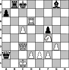 Partie-Notation im PGN-Format [Event "Westerw"] [Site "www.mySchach.de"] [Date "2010.12.02"] [Round "1"] [White "deepsabel"] [Black "woern63"] [ECO "A81"] [WhitemyELO "2007"] [BlackmyELO "1766"] [Result "1/2-1/2"] [TimeControl "10/2592000"] [WhiteDays "30"] [BlackDays "30"] [MySchachNr "70285"] 1. d4 f5 2. g3 g6 3. Bg2 c6 4. Nh3 Bg7 5. Nf4 e6 6. h4 d6 7. Na3 Nh6 8. c3 Qe7 9. Nd3 Nf7 10. h5 e5 11. hxg6 hxg6 12. Rxh8+ Bxh8 13. Qa4 Nd7 14. dxe5 Nfxe5 15. Be3 Nb6 16. Qb4 Be6 17. O-O-O Nec4 18. Nxc4 Nxc4 19. Rh1 Bg7 20. Bd4 Bxd4 21. cxd4 O-O-O 22. Nf4 Bg8 23. d5 Ne5 24. dxc6 Nxc6 25. Bxc6 bxc6 26. Nxg6 Qe6 27. Nf4 Qxa2 28. Rh6 c5 29. Qc3 Kc7 30. b4 Kd7 31. bxc5 Rb8 32. Rxd6+ Kc8 1/2-1/2 Stellungs-Notation im FEN-Format 1rk3b1/p7/3R4/2P2p2/5N2/2Q3P1/q2PPP2/2K5 - - - 1 33 Geschlagene Figuren Weiss: Geschlagene Figuren Schwarz: Klicken Sie auf eine geschlagene Figur um den gewünschten Zug darzustellen!