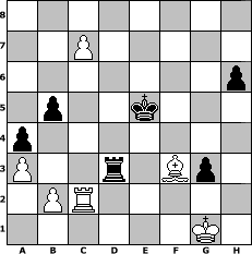 Partie-Notation im PGN-Format [Event "Herbstturnier 2022"] [Site "www.mySchach.de"] [Date "2022.09.26"] [Round "2"] [White "muellerh"] [Black "Rotstift10"] [ECO "A02"] [WhitemyELO "1540"] [BlackmyELO "1638"] [Result "1-0"] [TimeControl "10/1728000"] [WhiteDays "099"] [BlackDays "110"] [MySchachNr "127314"] 1. f4 e6 2. Nf3 Nc6 3. e4 d5 4. exd5 exd5 5. d4 Nf6 6. Nc3 Bb4 7. Bd2 Bxc3 8. Bxc3 Ne4 9. Qd3 O-O 10. O-O-O Bf5 11. Qe3 a5 12. a3 h6 13. Ne5 Qd6 14. h3 f6 15. Nf3 Nxc3 16. Qxc3 Qxf4+ 17. Kb1 Be4 18. Be2 a4 19. Rhf1 Qd6 20. Nd2 Bxg2 21. Rg1 Be4 22. Nxe4 dxe4 23. Qe3 f5 24. Qc3 Ra5 25. d5 Qf6 26. Qxf6 Rxf6 27. dxc6 Rxc6 28. Bh5 Rd6 29. Bg6 Rad5 30. Bh5 f4 31. Bg4 c6 32. c4 Rd3 33. Kc2 b5 34. c5 R6d4 35. Be6+ Kf8 36. Rxd3 exd3+ 37. Kd2 Re4 38. Re1 Rd4 39. Bf5 Rc4 40. Rc1 Rd4 41. Bxd3 g5 42. Kc2 Rd5 43. Kd2 Kg7 44. Ke2 Re5+ 45. Kf2 Re3 46. Bf5 Rb3 47. Rc2 Kf6 48. Bd7 Ke5 49. Bxc6 Rxh3 50. Bg2 Rd3 51. c6 g4 52. c7 g3+ 53. Kg1 f3 54. Bxf3 1-0 Stellungs-Notation im FEN-Format 8/2P5/7p/1p2k3/p7/P2r1Bp1/1PR5/6K1 - - - 0 54 Geschlagene Figuren Weiss: Geschlagene Figuren Schwarz: Klicken Sie auf eine geschlagene Figur um den gewünschten Zug darzustellen!