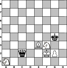 Partie-Notation im PGN-Format [Event "FC960 Auf ein Neues!"] [Site "www.mySchach.de"] [Date "2011.06.14"] [Round "1"] [White "Erich"] [Black "Lemmi11"] [Variant "Fischerrandom"] [SetUp "1"] [FEN "nrqkrbbn/pppppppp/8/8/8/8/PPPPPPPP/NRQKRBBN w KQkq - 0 1"] [WhitemyELO "1981"] [BlackmyELO "1687"] [Result "1/2-1/2"] [TimeControl "10/2592000"] [WhiteDays "240"] [BlackDays "270"] [MySchachNr "74557"] 1. Nb3 f6 2. f3 Nb6 3. e4 e5 4. Ng3 Ng6 5. d4 exd4 6. Bxd4 c5 7. Bf2 Ne5 8. Be2 Be7 9. O-O g6 10. c4 Qc7 11. Nd2 Nc6 12. Ndb3 Ne5 13. Nd2 Nc6 14. Ndb3 Ne5 15. Nd2 Nc6 16. b3 h5 17. Re1 Bd6 18. a4 Bf7 19. Ndf1 Nd4 20. Bd3 Nc6 21. Qh6 O-O-O 22. Ne2 Kb8 23. Qg7 Ne5 24. Bc2 g5 25. Qxf6 Rg8 26. Red1 Rg6 27. Rxd6 Rxf6 28. Rxf6 d6 29. Be3 Rg8 30. Rd1 Nc8 31. Nc3 h4 32. h3 Bg6 33. Nd5 Qg7 34. Nh2 Bf7 35. Rf5 Bxd5 36. Rxd5 Nc6 37. Nf1 Qc3 38. Rd2 Na5 39. Rfd5 Nc6 40. R5d3 Qf6 41. Rd5 b6 42. Rf5 Qe7 43. Bb1 Rg6 44. Rfd5 Nb4 45. Rf5 Nc6 46. Rfd5 Qg7 47. e5 Nxe5 48. Bxg6 Qxg6 49. a5 Qb1 50. axb6 axb6 51. f4 gxf4 52. Bxf4 Qxb3 53. Rxd6 Nxd6 54. Bxe5 Qxc4 55. Bxd6+ Kb7 56. Be7 Qe4 57. Bg5 c4 58. Be3 b5 59. Rd6 Qf5 60. Rb6+ Kc7 61. Rh6 c3 62. Rxh4 Qb1 63. Rg4 b4 64. Rc4+ Kd7 65. h4 c2 66. h5 Qb3 67. Rd4+ Ke6 68. Bd2 Qa3 69. Re4+ Kf7 70. Rf4+ Kg8 71. Rxb4 Qxb4 72. Bxb4 c1=Q 73. Bd2 Qc5+ 74. Be3 Qxh5 75. Kf2 Qf5+ 76. Kg1 Kf7 77. Nd2 Kg6 78. Nf3 Kh5 79. Kf1 Kg4 80. Kf2 Qc2+ 1/2-1/2 Stellungs-Notation im FEN-Format 8/8/8/8/6k1/4BN2/2q2KP1/N7 - - - 12 81 Geschlagene Figuren Weiss: Geschlagene Figuren Schwarz: Klicken Sie auf eine geschlagene Figur um den gewünschten Zug darzustellen!