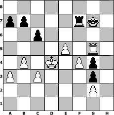 Partie-Notation im PGN-Format [Event "Thera"] [Site "www.mySchach.de"] [Date "2025.07.03"] [Round "1"] [White "borsti"] [Black "skuehnel"] [ECO "C65"] [WhitemyELO "1154"] [BlackmyELO "1382"] [Result "1-0"] [TimeControl "10/2592000"] [WhiteDays "118"] [BlackDays "119"] [MySchachNr "133481"] 1. e4 e5 2. Nf3 Nc6 3. Bb5 Nf6 4. Bxc6 dxc6 5. d3 h6 6. a3 Bg4 7. h3 Be6 8. Nc3 Bd6 9. Be3 O-O 10. O-O c5 11. Nb5 c6 12. Nc3 c4 13. d4 exd4 14. Bxd4 Bf4 15. Re1 Ne8 16. Bc5 Nd6 17. Bxd6 Bxd6 18. Qe2 Qb6 19. Rab1 Rfe8 20. Nd2 f5 21. Kf1 Bf7 22. f3 Bg3 23. Red1 Bh5 24. Nxc4 Qc5 25. Rd3 Qxc4 26. Re3 Qxe2+ 27. Nxe2 f4 28. Rd3 Rad8 29. Rbd1 Rxd3 30. Rxd3 Rf8 31. Nxg3 fxg3 32. Rd7 Rf7 33. Rd8+ Kh7 34. Rd6 g5 35. Ke2 Bg6 36. Ke3 Bh5 37. Rd2 Bg6 38. c3 h5 39. e5 g4 40. hxg4 hxg4 41. f4 Bf5 42. Rd6 Re7 43. b4 Kg7 44. Kd4 Kf7 45. Rf6+ Kg7 46. Rxf5 Rf7 47. Rg5+ 1-0 Stellungs-Notation im FEN-Format 8/pp3rk1/2p5/4P1R1/1P1K1Pp1/P1P3p1/6P1/8 - - - 2 47 Geschlagene Figuren Weiss: Geschlagene Figuren Schwarz: Klicken Sie auf eine geschlagene Figur um den gewünschten Zug darzustellen!