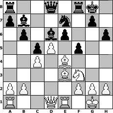 Partie-Notation im PGN-Format [Event "Herbstturnier bis 1600"] [Site "www.mySchach.de"] [Date "2025.10.14"] [Round "1"] [White "Master1"] [Black "Campino1986"] [ECO "D00"] [WhitemyELO "1404"] [BlackmyELO "1558"] [Result "*"] [TimeControl "10/2592000"] [WhiteDays "37"] [BlackDays "40"] [MySchachNr "133755"] 1. d4 d5 2. e3 Nf6 3. Bd3 e6 4. Nf3 Bd6 5. O-O O-O 6. Nbd2 c5 7. c3 b6 8. Re1 Nc6 9. e4 dxe4 10. Nxe4 Nxe4 11. Bxe4 Bb7 12. Be3 h6 13. d5 Ne7 14. c4 f5 * Stellungs-Notation im FEN-Format r2q1rk1/pb2n1p1/1p1bp2p/2pP1p2/2P1B3/4BN2/PP3PPP/R2QR1K1 w - - 0 15 Geschlagene Figuren Weiss: Geschlagene Figuren Schwarz: Klicken Sie auf eine geschlagene Figur um den gewünschten Zug darzustellen!