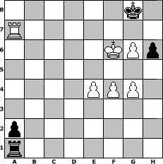 Partie-Notation im PGN-Format [Event "Katalanisch"] [Site "www.mySchach.de"] [Date "2012.06.11"] [Round "2"] [White "Seneca"] [Black "Tigerle"] [ECO "E00"] [WhitemyELO "1393"] [BlackmyELO "1519"] [Result "1-0"] [TimeControl "10/1728000"] [WhiteDays "20"] [BlackDays "14"] [MySchachNr "82186"] 1. d4 Nf6 2. c4 e6 3. g3 Bb4+ 4. Bd2 Be7 5. Bg2 d5 6. cxd5 exd5 7. e3 c6 8. Ne2 O-O 9. O-O Bg4 10. f3 Be6 11. Nf4 Nbd7 12. Nxe6 fxe6 13. a3 e5 14. dxe5 Nxe5 15. Nc3 Bc5 16. b4 Bb6 17. Na4 Bc7 18. Bc3 Nc4 19. Bd4 b6 20. Rf2 Qe7 21. Re2 Rae8 22. Nb2 Nxb2 23. Bxb2 Be5 24. Bxe5 Qxe5 25. Rc1 Qe6 26. Qd2 Nd7 27. Qc3 c5 28. bxc5 bxc5 29. Ree1 Qe5 30. Kf2 Re7 31. Qxe5 Rxe5 32. Re2 Rfe8 33. Bh3 Nb6 34. Rxc5 Na4 35. Ra5 Nc3 36. Re1 R8e7 37. Rc5 Na4 38. Ra5 Nb2 39. Bf1 Nc4 40. Bxc4 dxc4 41. Rxe5 Rxe5 42. Rc1 Ra5 43. Rxc4 Rxa3 44. h4 a5 45. f4 a4 46. Kf3 Ra1 47. Ke4 a3 48. Ra4 a2 49. g4 Kf7 50. h5 h6 51. Ra6 Kg8 52. Kf5 Kh7 53. e4 g6+ 54. hxg6+ Kg7 55. Ra7+ Kg8 56. Kf6 1-0 Stellungs-Notation im FEN-Format 6k1/R7/5KPp/8/4PPP1/8/p7/r7 - - - 4 56 Geschlagene Figuren Weiss: Geschlagene Figuren Schwarz: Klicken Sie auf eine geschlagene Figur um den gewünschten Zug darzustellen!
