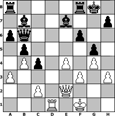 Partie-Notation im PGN-Format [Event "Herbstturnier 2022"] [Site "www.mySchach.de"] [Date "2022.09.26"] [Round "1"] [White "MiFie"] [Black "lotchi"] [ECO "B27"] [WhitemyELO "1087"] [BlackmyELO "1263"] [Result "0-1"] [TimeControl "10/1728000"] [WhiteDays "48"] [BlackDays "58"] [MySchachNr "127261"] 1. e4 c5 2. Nf3 f6 3. Nc3 e5 4. Bc4 d6 5. O-O g5 6. h3 a6 7. d3 Nh6 8. a3 Nc6 9. Be3 b5 10. Bd5 Bb7 11. Bxc6+ Bxc6 12. g4 c4 13. b4 d5 14. d4 exd4 15. Nxd4 Bb7 16. Nf5 Nxf5 17. f3 Nxe3 18. Qe2 Nxf1 19. Qxf1 d4 20. Ne2 d3 21. Qd1 dxe2 22. Qxe2 Be7 23. Rd1 Qb6+ 24. Kf1 O-O 0-1 Stellungs-Notation im FEN-Format r4rk1/1b2b2p/pq3p2/1p4p1/1Pp1P1P1/P4P1P/2P1Q3/3R1K2 - - - 5 25 Geschlagene Figuren Weiss: Geschlagene Figuren Schwarz: Klicken Sie auf eine geschlagene Figur um den gewünschten Zug darzustellen!
