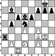 Partie-Notation im PGN-Format [Event "Orang - Utan"] [Site "www.mySchach.de"] [Date "2012.03.06"] [Round "1"] [White "OwainGwynedd"] [Black "Seneca"] [ECO "A00"] [WhitemyELO "1417"] [BlackmyELO "1339"] [Result "0-1"] [TimeControl "10/2592000"] [WhiteDays "73"] [BlackDays "59"] [MySchachNr "80326"] 1. b4 c6 2. d4 e6 3. c3 d5 4. Qd3 Nf6 5. Bg5 Be7 6. Nf3 O-O 7. Bf4 a6 8. Nbd2 b5 9. e4 a5 10. bxa5 Qxa5 11. Be2 dxe4 12. Qc2 exf3 13. Bxf3 Bb7 14. O-O Nd5 15. Bg3 Qxc3 16. Qxc3 Nxc3 17. Be5 Nd7 18. Bf4 Rxa2 19. Rxa2 Nxa2 20. Nb3 Rc8 21. Ra1 Nb4 22. g3 Ra8 23. Rb1 Nd5 24. Kg2 Nxf4+ 25. gxf4 Nf6 26. Kg3 Nd5 27. Rc1 Ra3 28. Nd2 Bd6 0-1 Stellungs-Notation im FEN-Format 6k1/1b3ppp/2pbp3/1p1n4/3P1P2/r4BK1/1P1N1P1P/2R5 - - - 7 29 Geschlagene Figuren Weiss: Geschlagene Figuren Schwarz: Klicken Sie auf eine geschlagene Figur um den gewünschten Zug darzustellen!