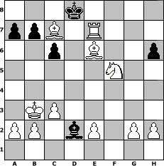 Partie-Notation im PGN-Format [Event "Blitz-Fernschach-Turnier"] [Site "www.mySchach.de"] [Date "2004.09.12"] [Round "2"] [White "Theresa"] [Black "Master1"] [ECO "C30"] [WhitemyELO "1587"] [BlackmyELO "1269"] [Result "1-0"] [TimeControl "10/864000"] [WhiteDays "10"] [BlackDays "10"] [MySchachNr "6834"] 1. e4 e5 2. f4 Nc6 3. Nf3 exf4 4. d4 d5 5. Bxf4 dxe4 6. Ng5 Nxd4 7. Bc4 Bf5 8. Nxf7 Qd7 9. c3 Bg4 10. Qxd4 Be6 11. Qxd7+ Bxd7 12. Nd2 Nf6 13. Nxh8 O-O-O 14. O-O-O Ng4 15. Nxe4 Bf5 16. Rxd8+ Kxd8 17. Rd1+ Ke7 18. Bg5+ Nf6 19. Nxf6 gxf6 20. Re1+ Kd7 21. Bxf6 Bh6+ 22. Kd1 Bg4+ 23. Kc2 Bf5+ 24. Kb3 c6 25. Nf7 Bd2 26. Re7+ Kc8 27. Nd6+ Kb8 28. Nxf5 h6 29. Be5+ Kc8 30. Be6+ Kd8 31. Bc7# 1-0 Stellungs-Notation im FEN-Format 3k4/ppB1R3/2p1B2p/5N2/8/1KP5/PP1bP1PP/8 - - - 5 31 Geschlagene Figuren Weiss: ![]() ![]() ![]() ![]() ![]() ![]() ![]() ![]() ![]() ![]() ![]() ![]() ![]() ![]() ![]() Geschlagene Figuren Schwarz: ![]() ![]() ![]() ![]() ![]() ![]() ![]() ![]() ![]() ![]() ![]() ![]() ![]() ![]() ![]() Klicken Sie auf eine geschlagene Figur um den gewünschten Zug darzustellen!