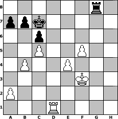 Partie-Notation im PGN-Format [Event "Erstes Hard Rock Cafe 1971"] [Site "www.mySchach.de"] [Date "2021.05.29"] [Round "1"] [White "Grubengeist"] [Black "deepsabel"] [ECO "C63"] [WhitemyELO "2042"] [BlackmyELO "1669"] [Result "1-0"] [TimeControl "10/2592000"] [WhiteDays "120"] [BlackDays "118"] [MySchachNr "122364"] 1. e4 e5 2. Nf3 Nc6 3. Bb5 f5 4. d3 fxe4 5. dxe4 Nf6 6. O-O Bc5 7. Bc4 d6 8. Nc3 Bg4 9. h3 Bh5 10. Bg5 Qd7 11. Bxf6 gxf6 12. Nxe5 Bxd1 13. Nxd7 Kxd7 14. Raxd1 Rae8 15. g3 Ne5 16. Be2 Rhg8 17. Kg2 Kc8 18. f4 Nd7 19. Bg4 Kd8 20. Bf5 h6 21. Nd5 Ref8 22. b4 Bb6 23. c4 Rg7 24. Kf3 c6 25. Nxb6 Nxb6 26. Rxd6+ Kc7 27. c5 Nc8 28. Bxc8 Kxc8 29. Rfd1 Rfg8 30. g4 h5 31. Rxf6 hxg4+ 32. hxg4 Rxg4 33. Rf8+ Kc7 34. Rxg8 Rxg8 35. f5 1-0 Stellungs-Notation im FEN-Format 6r1/ppk5/2p5/2P2P2/1P2P3/5K2/P7/3R4 - - - 0 35 Geschlagene Figuren Weiss: Geschlagene Figuren Schwarz: Klicken Sie auf eine geschlagene Figur um den gewünschten Zug darzustellen!