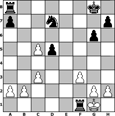 Partie eroeffnet am 23.08.2005, 00:01 Uhr und beendet am 20.09.2005, 14:32 Uhr Spieler weiss: Falcor Spieler schwarz: Knight Knight hat die Partie gewonnen! | |