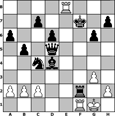 Partie-Notation im PGN-Format [Event "PAUL MORPHY MEMORIAL TOURNAMENT"] [Site "www.mySchach.de"] [Date "2019.05.18"] [Round "1"] [White "augustus"] [Black "kalle"] [ECO "B07"] [WhitemyELO "1073"] [BlackmyELO "1643"] [Result "0-1"] [TimeControl "10/3456000"] [WhiteDays "31"] [BlackDays "38"] [MySchachNr "115050"] 1. e4 d6 2. Bc4 e6 3. Nf3 g6 4. O-O Bg7 5. d4 Ne7 6. Nc3 O-O 7. Bg5 a6 8. d5 e5 9. Nh4 f6 10. Be3 f5 11. f4 fxe4 12. Nxe4 Nf5 13. Nxf5 Bxf5 14. Ng5 exf4 15. Bxf4 Nd7 16. Re1 b5 17. Bd3 Ne5 18. Bxf5 Rxf5 19. Qd2 Nc4 20. Qf2 Rxg5 21. Bxg5 Qxg5 22. g3 Qxd5 23. Re2 Bd4 24. Rf1 Rf8 25. Re3 Rxf2 26. Re8+ Kf7 0-1 Stellungs-Notation im FEN-Format 4R3/2p2k1p/p2p2p1/1p1q4/2nb4/6P1/PPP2r1P/5RK1 - - - 2 27 Geschlagene Figuren Weiss: Geschlagene Figuren Schwarz: Klicken Sie auf eine geschlagene Figur um den gewünschten Zug darzustellen!