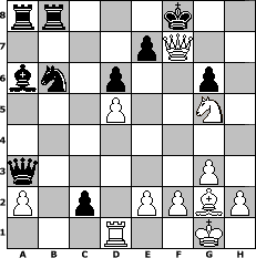 Partie-Notation im PGN-Format [Event "Open II"] [Site "www.mySchach.de"] [Date "2016.03.11"] [Round "1"] [White "Helmut48"] [Black "Joschi"] [ECO "A58"] [WhitemyELO "2003"] [BlackmyELO "1512"] [Result "1-0"] [TimeControl "10/1728000"] [WhiteDays "59"] [BlackDays "60"] [MySchachNr "102894"] 1. d4 Nf6 2. c4 c5 3. d5 b5 4. cxb5 a6 5. bxa6 Bxa6 6. Nc3 d6 7. g3 Nbd7 8. Nf3 g6 9. Bg2 Bg7 10. Rb1 O-O 11. b3 Qb6 12. Qd2 Rfb8 13. O-O Qb4 14. Re1 Ng4 15. Bb2 Nge5 16. Nxe5 Bxe5 17. Ne4 Bxb2 18. Rxb2 Qa3 19. Rc2 Nb6 20. Rd1 c4 21. Qh6 cxb3 22. Ng5 bxc2 23. Qxh7+ Kf8 24. Qxf7# 1-0 Stellungs-Notation im FEN-Format rr3k2/4pQ2/bn1p2p1/3P2N1/8/q5P1/P1p1PPBP/3R2K1 - - - 0 24 Geschlagene Figuren Weiss: Geschlagene Figuren Schwarz: Klicken Sie auf eine geschlagene Figur um den gewünschten Zug darzustellen!