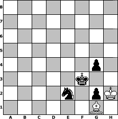 Partie-Notation im PGN-Format [Event "Ab in den Herbst"] [Site "www.mySchach.de"] [Date "2014.09.23"] [Round "1"] [White "Rotstift10"] [Black "sprinterde"] [ECO "C43"] [WhitemyELO "1592"] [BlackmyELO "1744"] [Result "0-1"] [TimeControl "10/864000"] [WhiteDays "05"] [BlackDays "10"] [MySchachNr "96018"] 1. e4 e5 2. Nf3 Nf6 3. d4 exd4 4. e5 Qe7 5. Qxd4 Nc6 6. Qf4 Nd5 7. Qg3 Qb4+ 8. Nbd2 Qf4 9. Qxf4 Nxf4 10. a3 Ng6 11. Nc4 a6 12. Bd3 b5 13. Bxg6 hxg6 14. Ne3 Rh5 15. g4 Rh3 16. Ng5 Rh8 17. Nd5 Ra7 18. Bf4 d6 19. exd6 cxd6 20. f3 f6 21. Ne4 g5 22. Bxd6 f5 23. Bxf8 fxe4 24. Bc5 Rf7 25. O-O exf3 26. Rae1+ Kd8 27. Rd1 Bxg4 28. Nf6+ Bd7 29. Bb6+ Kc8 30. Nxd7 Rxd7 31. Rxd7 Kxd7 32. Rxf3 Ne5 33. Rf5 Ke6 34. Rf1 g4 35. Bc7 Nf3+ 36. Kg2 Rc8 37. Bf4 Rxc2+ 38. Rf2 Ne1+ 39. Kg3 Rxf2 40. Kxf2 Nd3+ 41. Kg3 Kf5 42. Bd2 Nxb2 43. Bc3 Nc4 44. Bb4 a5 45. Bf8 g5 46. Be7 Ne5 47. Bd6 Nc6 48. Kf2 b4 49. axb4 axb4 50. Ke3 b3 51. Kd3 Nd4 52. Ba3 b2 53. Bxb2 Nf3 54. Ke3 Nxh2 55. Kf2 Nf3 56. Bc1 Kg6 57. Kg3 Kh5 58. Ba3 Nd4 59. Bc5 Nf5+ 60. Kg2 Kh4 61. Bf2+ g3 62. Bg1 Kg4 63. Kf1 Kf3 64. Bb6 g2+ 65. Kg1 Ng3 66. Kh2 Ne2 67. Bg1 g4 0-1 Stellungs-Notation im FEN-Format 8/8/8/8/6p1/5k2/4n1pK/6B1 - - - 0 68 Geschlagene Figuren Weiss: ![]() ![]() ![]() ![]() ![]() ![]() ![]() ![]() ![]() ![]() ![]() ![]() ![]() ![]() ![]() Geschlagene Figuren Schwarz: ![]() ![]() ![]() ![]() ![]() ![]() ![]() ![]() ![]() ![]() ![]() ![]() ![]() ![]() ![]() Klicken Sie auf eine geschlagene Figur um den gewünschten Zug darzustellen!