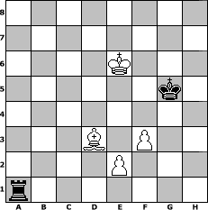 Partie-Notation im PGN-Format [Event "Karnevalsstress"] [Site "www.mySchach.de"] [Date "2009.02.15"] [Round "1"] [White "Andylein1989"] [Black "kischok46"] [ECO "A00"] [WhitemyELO "1647"] [BlackmyELO "2031"] [Result "1/2-1/2"] [TimeControl "10/1728000"] [WhiteDays "107"] [BlackDays "120"] [MySchachNr "52797"] 1. g3 e5 2. Bg2 d5 3. d4 e4 4. c4 dxc4 5. Bxe4 Nf6 6. Bg2 Bb4+ 7. Nc3 O-O 8. Nf3 Be6 9. O-O Nc6 10. Bg5 h6 11. d5 Bxc3 12. bxc3 Qxd5 13. Bxf6 Qxd1 14. Rfxd1 gxf6 15. Rab1 Rab8 16. Nd2 Kh7 17. Ne4 Kg7 18. Nc5 Na5 19. Nxb7 Nxb7 20. Bxb7 Rfd8 21. Rxd8 Rxd8 22. Rb5 Rd1+ 23. Kg2 Rc1 24. Ra5 Rxc3 25. Rxa7 f5 26. Bf3 Rc1 27. Rxc7 c3 28. Rc5 Bxa2 29. Bd5 Bb1 30. Kf3 c2 31. Bb3 Rd1 32. Bxc2 Rc1 33. Bxf5 Rxc5 34. Bxb1 f5 35. h3 Kf6 36. g4 fxg4+ 37. hxg4 Rb5 38. Bf5 Ke5 39. Kg3 Rb3+ 40. Bd3 Rb4 41. Kh4 Kf4 42. Kh5 Rb3 43. Kxh6 Kxg4 44. Kg6 Rb6+ 45. Kg7 Kg5 46. Kg8 Rf6 47. f3 Kh6 48. Be4 Ra6 49. Kf7 Kg5 50. Bd3 Ra1 51. Ke6 1/2-1/2 Stellungs-Notation im FEN-Format 8/8/4K3/6k1/8/3B1P2/4P3/r7 - - - 8 51 Geschlagene Figuren Weiss: Geschlagene Figuren Schwarz: Klicken Sie auf eine geschlagene Figur um den gewünschten Zug darzustellen!