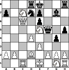 Partie-Notation im PGN-Format [Event "Herbstturnier 2025"] [Site "www.mySchach.de"] [Date "2025.09.16"] [Round "1"] [White "Oste152V4"] [Black "Hobbykegler"] [ECO "A06"] [WhitemyELO "1753"] [BlackmyELO "1016"] [Result "1-0"] [TimeControl "10/1728000"] [WhiteDays "30"] [BlackDays "24"] [MySchachNr "133655"] 1. Nf3 d5 2. e3 Nc6 3. c4 dxc4 4. Bxc4 Nf6 5. Nc3 Be6 6. Bxe6 fxe6 7. Qb3 Qd3 8. Qxb7 Rd8 9. Qxc6+ Nd7 10. Ne5 Qf5 11. d4 h5 12. Bd2 g5 13. Nb5 g4 14. Rc1 Bg7 15. Nxc7+ 1-0 Stellungs-Notation im FEN-Format 3rk2r/p1Nnp1b1/2Q1p3/4Nq1p/3P2p1/4P3/PP1B1PPP/2R1K1NR - Kk - 0 15 Geschlagene Figuren Weiss: Geschlagene Figuren Schwarz: Klicken Sie auf eine geschlagene Figur um den gewünschten Zug darzustellen!