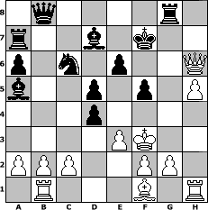 Partie-Notation im PGN-Format [Event "Herbstturnier 2022"] [Site "www.mySchach.de"] [Date "2022.09.26"] [Round "2"] [White "Leon"] [Black "lotchi"] [ECO "A10"] [WhitemyELO "1632"] [BlackmyELO "1263"] [Result "0-1"] [TimeControl "10/1728000"] [WhiteDays "60"] [BlackDays "58"] [MySchachNr "127311"] 1. c4 f5 2. d4 d5 3. c5 Nf6 4. Nc3 e6 5. Bg5 h6 6. Bf4 Nc6 7. Qa4 a6 8. Nb5 Kf7 9. Nxc7 Ra7 10. Nf3 Kg8 11. e3 g5 12. Nxg5 hxg5 13. Bxg5 Be7 14. Bf4 Bd7 15. Qd1 Qc8 16. Qf3 Bd8 17. Qg3+ Kf7 18. h4 Nh5 19. Qf3 Nxf4 20. Qxf4 Bxc7 21. Qg5 Ba5+ 22. Ke2 Qb8 23. h5 Rg8 24. Qh6 b6 25. Rb1 bxc5 26. Kf3 cxd4 0-1 Stellungs-Notation im FEN-Format 1q4r1/r2b1k2/p1n1p2Q/b2p1p1P/3p4/4PK2/PPP2PP1/1R3B1R - - - 0 27 Geschlagene Figuren Weiss: Geschlagene Figuren Schwarz: Klicken Sie auf eine geschlagene Figur um den gewünschten Zug darzustellen!