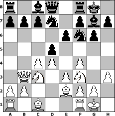 Partie-Notation im PGN-Format [Event "^^Lust, Laune und Spannung am Schach!!!^^"] [Site "www.mySchach.de"] [Date "2007.09.24"] [Round "1"] [White "bernhard"] [Black "Robur"] [ECO "A03"] [WhitemyELO "1605"] [BlackmyELO "1815"] [Result "1-0"] [TimeControl "10/864000"] [WhiteDays "17"] [BlackDays "00"] [MySchachNr "38450"] 1. f4 d5 2. d4 g6 3. Nf3 Bg7 4. e3 Bg4 5. Be2 Nf6 6. h3 Bc8 7. c4 e6 8. Nc3 O-O 9. O-O Nbd7 10. Qb3 1-0 Stellungs-Notation im FEN-Format r1bq1rk1/pppn1pbp/4pnp1/3p4/2PP1P2/1QN1PN1P/PP2BPP1/R1B2RK1 - - - 5 10 Geschlagene Figuren Weiss: Geschlagene Figuren Schwarz: Klicken Sie auf eine geschlagene Figur um den gewünschten Zug darzustellen!