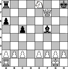 | Partie-Notation im PGN-Format [Event "Albspiele 24"] [Site "www.mySchach.de"] [Date "2012.11.07"] [Round "1"] [White "Wulfen49"] [Black "Hobbykegler"] [ECO "C44"] [WhitemyELO "1213"] [BlackmyELO "1106"] [Result "1-0"] [TimeControl "10/1728000"] [WhiteDays "20"] [BlackDays "10"] [MySchachNr "84945"] 1. e4 e5 2. Nf3 Nc6 3. d4 d6 4. Bb5 a6 5. Bxc6+ bxc6 6. O-O Be7 7. dxe5 d5 8. exd5 cxd5 9. Re1 f6 10. exf6 Nxf6 11. Bg5 h6 12. Bxf6 gxf6 13. Nd4 Bd7 14. Nc3 O-O 15. Nxd5 Bd6 16. Qh5 c5 17. Qg6+ Kh8 18. Qxh6+ Kg8 19. Qg6+ Kh8 20. Nf5 Rf7 21. Nxd6 Rf8 22. Nf7+ Rxf7 23. Re3 Qa5 24. Qxf7 Qd8 25. Nxf6 Bf5 26. Re8+ Qxe8 27. Nxe8 1-0 Stellungs-Notation im FEN-Format r3N2k/5Q2/p7/2p2b2/8/8/PPP1PPPP/R5K1 - - - 0 27 Geschlagene Figuren Weiss:                              Geschlagene Figuren Schwarz:                               Klicken Sie auf eine geschlagene Figur um den gewünschten Zug darzustellen!