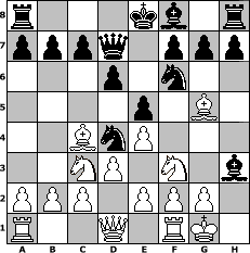 Partie-Notation im PGN-Format [Event "Trainingslager II"] [Site "www.mySchach.de"] [Date "2011.05.24"] [Round "2"] [White "Steppenwolf"] [Black "augustus"] [ECO "C41"] [WhitemyELO "1115"] [BlackmyELO "1236"] [Result "0-1"] [TimeControl "10/1728000"] [WhiteDays "01"] [BlackDays "19"] [MySchachNr "74165"] 1. e4 e5 2. Nf3 d6 3. Nc3 Bg4 4. Bc4 Nc6 5. O-O Qd7 6. d3 Nf6 7. Bg5 Nd4 8. h3 Bxh3 0-1 Stellungs-Notation im FEN-Format r3kb1r/pppq1ppp/3p1n2/4p1B1/2BnP3/2NP1N1b/PPP1PPP1/R2Q1RK1 - kq - 0 9 Geschlagene Figuren Weiss: Geschlagene Figuren Schwarz: Klicken Sie auf eine geschlagene Figur um den gewünschten Zug darzustellen!