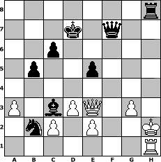 Partie-Notation im PGN-Format [Event "Schach dem Osterhasen VI"] [Site "www.mySchach.de"] [Date "2018.04.01"] [Round "1"] [White "Naunhofer"] [Black "Ziegert"] [ECO "C50"] [WhitemyELO "1617"] [BlackmyELO "1634"] [Result "0-1"] [TimeControl "10/2592000"] [WhiteDays "149"] [BlackDays "027"] [MySchachNr "111879"] 1. e4 e5 2. Nf3 Nc6 3. Bc4 Be7 4. Nc3 Nf6 5. d3 O-O 6. O-O a6 7. a3 h6 8. b4 Rb8 9. Bb2 b5 10. Bb3 a5 11. Bd5 Nxd5 12. Nxd5 Bd6 13. bxa5 Nxa5 14. Nxe5 c6 15. Ne3 Qc7 16. Nf3 Re8 17. g3 Nb7 18. Kg2 Nc5 19. Nd4 Na4 20. Rb1 Be5 21. f4 Nxb2 22. Qg4 Bxd4 23. Nf5 d6 24. Nxh6+ Kh7 25. Nf5 Bc3 26. e5 Bxf5 27. Qxf5+ g6 28. Qg5 dxe5 29. f5 Rg8 30. f6 Rh8 31. h4 Qd6 32. h5 Qd5+ 33. Rf3 Kg8 34. hxg6 Rh2+ 35. Kxh2 Qxf3 36. Rh1 Re8 37. gxf7+ Kxf7 38. Qg7+ Ke6 39. f7 Qxf7 40. Qh6+ Kd7 41. Qe3 Rh8+ 0-1 Stellungs-Notation im FEN-Format 7r/3k1q2/2p5/1p2p3/8/P1bPQ1P1/1nP1P2K/7R - - - 4 42 Geschlagene Figuren Weiss: Geschlagene Figuren Schwarz: Klicken Sie auf eine geschlagene Figur um den gewünschten Zug darzustellen!
