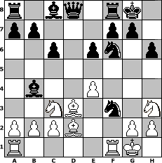 Partie-Notation im PGN-Format [Event "Oktober Gold"] [Site "www.mySchach.de"] [Date "2025.10.11"] [Round "1"] [White "kalle"] [Black "alibengali"] [ECO "B12"] [WhitemyELO "1614"] [BlackmyELO "1715"] [Result "0-1"] [TimeControl "10/1728000"] [WhiteDays "18"] [BlackDays "33"] [MySchachNr "133710"] 1. e4 c6 2. d4 d5 3. f3 e6 4. Nc3 Bb4 5. Bd3 dxe4 6. fxe4 Qxd4 7. Bd2 Qd8 8. Nf3 Nf6 9. Qe2 Nbd7 10. O-O O-O 11. Ng5 h6 12. Nh3 Ne5 13. Qf3 Nxf3+ 0-1 Stellungs-Notation im FEN-Format r1bq1rk1/pp3pp1/2p1pn1p/8/1b2P3/2NB1n1N/PPPB2PP/R4RK1 - - - 0 14 Geschlagene Figuren Weiss: Geschlagene Figuren Schwarz: Klicken Sie auf eine geschlagene Figur um den gewünschten Zug darzustellen!
