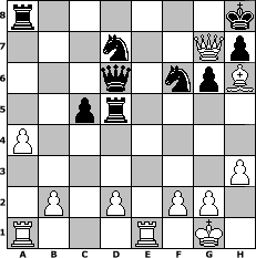 Partie-Notation im PGN-Format [Event "Gedenkturnier f"] [Site "www.mySchach.de"] [Date "2016.02.01"] [Round "1"] [White "martinus"] [Black "Joschi"] [ECO "A57"] [WhitemyELO "1803"] [BlackmyELO "1544"] [Result "1-0"] [TimeControl "10/2592000"] [WhiteDays "87"] [BlackDays "90"] [MySchachNr "102347"] 1. d4 Nf6 2. c4 c5 3. d5 b5 4. cxb5 a6 5. e3 g6 6. Nf3 Bg7 7. Nc3 axb5 8. Bxb5 O-O 9. O-O d6 10. h3 Nbd7 11. Re1 Ba6 12. Bc6 Rb8 13. e4 Bb7 14. a4 Bxc6 15. dxc6 Nb6 16. Nb5 Qc8 17. e5 dxe5 18. Nxe5 Rd8 19. Qe2 Rd5 20. c7 Ra8 21. Nc6 Bf8 22. Nxe7+ Bxe7 23. Qxe7 Nbd7 24. Nd6 Qxc7 25. Qxf7+ Kh8 26. Bh6 Qxd6 27. Qg7# 1-0 Stellungs-Notation im FEN-Format r6k/3n2Qp/3q1npB/2pr4/P7/7P/1P1P1PP1/R3R1K1 - - - 1 27 Geschlagene Figuren Weiss: Geschlagene Figuren Schwarz: Klicken Sie auf eine geschlagene Figur um den gewünschten Zug darzustellen!