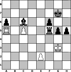 Partie-Notation im PGN-Format [Event "Sweety Tunier"] [Site "www.mySchach.de"] [Date "2006.02.28"] [Round "2"] [White "Fussel"] [Black "AlbertoAveiro"] [ECO "B90"] [WhitemyELO "1461"] [BlackmyELO "1517"] [Result "0-1"] [TimeControl "10/2592000"] [WhiteDays "87"] [BlackDays "65"] [MySchachNr "23025"] 1. e4 c5 2. Nf3 d6 3. d4 cxd4 4. Nxd4 Nf6 5. Nc3 a6 6. Bc4 e6 7. O-O Be7 8. h3 O-O 9. Bg5 Nc6 10. a3 h6 11. Bf4 Nxd4 12. Re1 e5 13. Be3 b5 14. Bxd4 exd4 15. Bd5 Nxd5 16. Nxd5 Bf6 17. Nxf6+ Qxf6 18. Rc1 Qg6 19. Qxd4 Bxh3 20. g3 Rfd8 21. b3 Be6 22. e5 dxe5 23. Qb6 Qg5 24. Re3 Re8 25. Re1 f6 26. Qb7 Qg6 27. Rc1 Qf7 28. Qxf7+ Bxf7 29. c4 bxc4 30. bxc4 Rec8 31. c5 Rc6 32. f4 exf4 33. gxf4 Re8 34. Rxe8+ Bxe8 35. a4 Re6 36. Kf2 Bxa4 37. Ra1 Bb5 38. Kg3 g5 39. f5 Re5 40. Rh1 Kg7 41. Rc1 Bc6 42. Ra1 Rxf5 43. Ra5 h5 0-1 Stellungs-Notation im FEN-Format 8/6k1/p1b2p2/R1P2rpp/8/6K1/4P3/8 - - - 0 44 Geschlagene Figuren Weiss: Geschlagene Figuren Schwarz: Klicken Sie auf eine geschlagene Figur um den gewünschten Zug darzustellen!