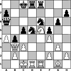 Partie-Notation im PGN-Format [Event "3. Chess960/2"] [Site "www.mySchach.de"] [Date "2009.04.06"] [Round "1"] [White "Peterlie77 (C)"] [Black "Pantagruel@"] [Variant "Fischerrandom"] [SetUp "1"] [FEN "rqknnrbb/pppppppp/8/8/8/8/PPPPPPPP/RQKNNRBB w KQkq - 0 1"] [WhitemyELO "1810"] [BlackmyELO "1500"] [Result "1-0"] [TimeControl "10/3456000"] [WhiteDays "71"] [BlackDays "00"] [MySchachNr "54662"] 1. f4 g6 2. e4 f5 3. e5 d6 4. d4 c5 5. exd6 exd6 6. dxc5 Qc7 7. g3 dxc5 8. c3 Nf6 9. Qc2 Bd5 10. Bxd5 Nxd5 11. Nf3 Ne6 12. Ne3 O-O-O 13. Qb3 Qc6 14. Nc4 b5 15. Nce5 Qa6 16. a4 b4 17. Re1 Rfe8 18. O-O-O Bxe5 19. Nxe5 1-0 Stellungs-Notation im FEN-Format 2krr3/p6p/q3n1p1/2pnNp2/Pp3P2/1QP3P1/1P3P1P/2KRR1B1 - - - 0 19 Geschlagene Figuren Weiss: Geschlagene Figuren Schwarz: Klicken Sie auf eine geschlagene Figur um den gewünschten Zug darzustellen!
