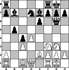 Partie-Notation im PGN-Format [Event "Godzilla Mannschaftsturnier 2013"] [Site "www.mySchach.de"] [Date "2013.08.15"] [Round "1"] [Board "5"] [White "Ziegert"] [Black "Wulfen49"] [ECO "C05"] [WhitemyELO "1579"] [BlackmyELO "1283"] [Result "0-1"] [TimeControl "10/3456000"] [WhiteDays "00"] [BlackDays "40"] [MySchachNr "89715"] 1. e4 e6 2. d4 d5 3. Nd2 Nf6 4. e5 c5 5. exf6 Qxf6 6. Ndf3 c4 7. c3 Nd7 8. Ne2 b5 9. b3 Be7 10. Ng3 Qg6 11. Be2 O-O 12. O-O Bb7 13. bxc4 dxc4 0-1 Stellungs-Notation im FEN-Format r4rk1/pb1nbppp/4p1q1/1p6/2pP4/2P2NN1/P3BPPP/R1BQ1RK1 - - - 0 14 Geschlagene Figuren Weiss: Geschlagene Figuren Schwarz: Klicken Sie auf eine geschlagene Figur um den gewünschten Zug darzustellen!