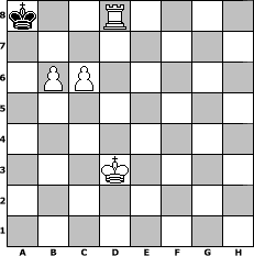 Partie-Notation im PGN-Format [Event "Thema-2016-02"] [Site "www.mySchach.de"] [Date "2016.02.10"] [Round "1"] [White "Joschi"] [Black "Achimkogge"] [ECO "C33"] [WhitemyELO "1539"] [BlackmyELO "1424"] [Result "1-0"] [TimeControl "10/2592000"] [WhiteDays "30"] [BlackDays "30"] [MySchachNr "102463"] 1. e4 e5 2. f4 exf4 3. b3 Qh4+ 4. Ke2 d6 5. Nf3 Bg4 6. d3 g5 7. Bb2 f6 8. Nc3 Nc6 9. Kd2 Qf2+ 10. Qe2 Qxe2+ 11. Bxe2 O-O-O 12. Nd5 Rd7 13. Nxf6 Nxf6 14. Bxf6 Rg8 15. Nxg5 Bxe2 16. Kxe2 Bh6 17. h4 Bg7 18. Bxg7 Rgxg7 19. Rhg1 Nd4+ 20. Kd2 Rde7 21. c3 Nc6 22. Raf1 h6 23. Nh3 Rg4 24. Rxf4 Rg8 25. g4 b5 26. g5 hxg5 27. Rxg5 Rh8 28. h5 Ne5 29. d4 Nf7 30. Rg7 Rxh5 31. Nf2 Rh2 32. Rgxf7 Rd7 33. Rxd7 Kxd7 34. c4 b4 35. Ke3 Rh7 36. e5 Re7 37. Re4 dxe5 38. Rxe5 Rg7 39. Rb5 Rg3+ 40. Ke2 Rg6 41. Rxb4 Re6+ 42. Kd3 Re8 43. Ra4 Ra8 44. Ne4 c6 45. Nc3 Kc7 46. d5 cxd5 47. Nxd5+ Kd6 48. Ra6+ Kd7 49. Nb6+ Kc7 50. Nxa8+ Kb7 51. Rd6 Kxa8 52. Rd7 Kb8 53. c5 a5 54. a3 Ka8 55. b4 axb4 56. axb4 Kb8 57. b5 Ka8 58. c6 Kb8 59. b6 Ka8 60. Rd8# 1-0 Stellungs-Notation im FEN-Format k2R4/8/1PP5/8/8/3K4/8/8 - - - 2 60 Geschlagene Figuren Weiss: ![]() ![]() ![]() ![]() ![]() ![]() ![]() ![]() ![]() ![]() ![]() ![]() ![]() ![]() ![]() Geschlagene Figuren Schwarz: ![]() ![]() ![]() ![]() ![]() ![]() ![]() ![]() ![]() ![]() ![]() ![]() ![]() ![]() ![]() Klicken Sie auf eine geschlagene Figur um den gewünschten Zug darzustellen!