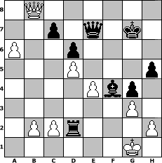 Partie-Notation im PGN-Format [Event "Mistwetter-Turnier"] [Site "www.mySchach.de"] [Date "2006.02.12"] [Round "1"] [White "Antaeus"] [Black "koding"] [ECO "A20"] [WhitemyELO "1816"] [BlackmyELO "1866"] [Result "0-1"] [TimeControl "10/864000"] [WhiteDays "39"] [BlackDays "39"] [MySchachNr "22398"] 1. c4 e5 2. e4 Nf6 3. d3 Nc6 4. Nf3 d6 5. g3 g6 6. Bg2 Bg7 7. O-O O-O 8. Bg5 h6 9. Bc1 Be6 10. Nc3 Nd7 11. Be3 f5 12. Nd5 g5 13. exf5 Bxf5 14. Re1 Nb6 15. Nd2 g4 16. Be4 Bxe4 17. dxe4 Qd7 18. Qb3 Rf7 19. a4 Nd4 20. Bxd4 exd4 21. a5 Nxd5 22. Qxb7 Raf8 23. cxd5 Rxf2 24. Qb4 Qf7 25. Rf1 h5 26. a6 Bh6 27. Qxd4 Rxd2 28. Qxa7 Qe7 29. Rxf8+ Qxf8 30. Rf1 Qe7 31. Qb8+ Kg7 32. Rf4 Bxf4 0-1 Stellungs-Notation im FEN-Format 1Q6/2p1q1k1/P2p4/3P3p/4Pbp1/6P1/1PPr3P/6K1 - - - 0 33 Geschlagene Figuren Weiss: Geschlagene Figuren Schwarz: Klicken Sie auf eine geschlagene Figur um den gewünschten Zug darzustellen!