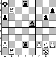 Partie-Notation im PGN-Format [Event "Es weihnachtet sehr"] [Site "www.mySchach.de"] [Date "2021.12.20"] [Round "1"] [White "skuehnel"] [Black "boeserWatz"] [ECO "D20"] [WhitemyELO "1270"] [BlackmyELO "1345"] [Result "0-1"] [TimeControl "10/864000"] [WhiteDays "10"] [BlackDays "10"] [MySchachNr "123959"] 1. d4 d5 2. c4 dxc4 3. e4 Nf6 4. e5 Nd5 5. Bxc4 g6 6. Nf3 Nc6 7. Bxd5 Qxd5 8. O-O Bg7 9. Nc3 Qd7 10. Re1 f6 11. e6 Qd8 12. d5 Nb4 13. Qa4+ c6 14. Qxb4 cxd5 15. Rd1 Bxe6 16. Nxd5 Bxd5 17. Qb5+ Qd7 18. Rxd5 Qxb5 19. Rxb5 O-O-O 20. Be3 a6 21. Rc1+ Kb8 22. Bf4+ e5 23. Bxe5+ fxe5 24. Nxe5 Rd2 25. Nc6+ Ka8 26. Rb6 Bxb2 27. Rb1 Rc8 28. Ne5 Bxe5 29. Rxb7 Rcd8 0-1 Stellungs-Notation im FEN-Format k2r4/1R5p/p5p1/4b3/8/8/P2r1PPP/1R4K1 - - - 1 30 Geschlagene Figuren Weiss: Geschlagene Figuren Schwarz: Klicken Sie auf eine geschlagene Figur um den gewünschten Zug darzustellen!