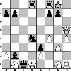 Partie-Notation im PGN-Format [Event "Herbstturnier bis 1600"] [Site "www.mySchach.de"] [Date "2025.10.14"] [Round "1"] [White "Achimkogge"] [Black "Campino1986"] [ECO "D00"] [WhitemyELO "1226"] [BlackmyELO "1558"] [Result "0-1"] [TimeControl "10/2592000"] [WhiteDays "87"] [BlackDays "88"] [MySchachNr "133741"] 1. d4 d5 2. c3 Nf6 3. Nd2 Bf5 4. f3 e6 5. b4 Bd6 6. g3 e5 7. dxe5 Bxe5 8. Qa4+ Qd7 9. b5 Bxc3 10. Rb1 Bxb1 11. Kd1 d4 12. Nxb1 Nd5 13. Bh3 Qd6 14. b6+ Nc6 15. bxc7 Qxc7 16. Qb5 Rd8 17. Bf5 O-O 18. Be4 Ne3+ 19. Bxe3 dxe3+ 20. Bd3 Nd4 21. Bxh7+ Kxh7 22. Qh5+ Kg8 23. f4 Bb2 24. h4 Qc1# 0-1 Stellungs-Notation im FEN-Format 3r1rk1/pp3pp1/8/7Q/3n1P1P/4p1P1/Pb2P3/1NqK2NR - - - 1 25 Geschlagene Figuren Weiss: Geschlagene Figuren Schwarz: Klicken Sie auf eine geschlagene Figur um den gewünschten Zug darzustellen!