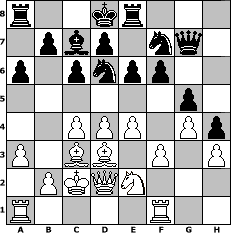 Partie-Notation im PGN-Format [Event "?"] [Site "www.mySchach.de"] [Date "2025.04.15"] [Round "?"] [White "peter58"] [Black "faustballer"] [Variant "Fischerrandom"] [SetUp "1"] [FEN "rbnkbrnq/pppppppp/8/8/8/8/PPPPPPPP/RBNKBRNQ w KQkq - 0 1"] [WhitemyELO "1569"] [BlackmyELO "1510"] [Result "1/2-1/2"] [TimeControl "10/1728000"] [WhiteDays "40"] [BlackDays "60"] [MySchachNr "133239"] 1. g4 c6 2. Nb3 Nd6 3. a3 g5 4. d4 Bc7 5. Bd2 h6 6. c3 f6 7. Bd3 Bf7 8. Kc2 Bd5 9. f3 h5 10. Qg2 h4 11. h3 a6 12. e4 Bxb3+ 13. Kxb3 Nh6 14. Qe2 Qg8+ 15. Kc2 Nhf7 16. c4 e6 17. Bb4 Re8 18. Qd2 Qg7 19. Ne2 Nc8 20. Bc3 Ncd6 1/2-1/2 Stellungs-Notation im FEN-Format r2kr3/1pbp1nq1/p1pnpp2/6p1/2PPP1Pp/P1BB1P1P/1PKQN3/R4R2 - q - 8 21 Geschlagene Figuren Weiss: Geschlagene Figuren Schwarz: Klicken Sie auf eine geschlagene Figur um den gewünschten Zug darzustellen!