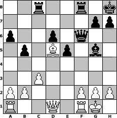 Partie-Notation im PGN-Format [Event "Open"] [Site "www.mySchach.de"] [Date "2016.01.17"] [Round "1"] [White "Joschi"] [Black "Attila89"] [ECO "B33"] [WhitemyELO "1526"] [BlackmyELO "1625"] [Result "1/2-1/2"] [TimeControl "10/1728000"] [WhiteDays "60"] [BlackDays "60"] [MySchachNr "102133"] 1. e4 c5 2. Nf3 Nc6 3. d4 cxd4 4. Nxd4 Nf6 5. Nc3 e5 6. Ndb5 d6 7. Bg5 a6 8. Na3 b5 9. Nd5 Be7 10. Bxf6 Bxf6 11. c3 Bg5 12. Be2 f5 13. exf5 Bxf5 14. O-O O-O 15. Nc2 Ne7 16. Nce3 Be6 17. Bg4 Bxd5 18. Nxd5 Kh8 19. Bf3 Rc8 20. Nxe7 Qxe7 21. Bd5 Qf6 1/2-1/2 Stellungs-Notation im FEN-Format 2r2r1k/6pp/p2p1q2/1p1Bp1b1/8/2P5/PP3PPP/R2Q1RK1 - - - 2 22 Geschlagene Figuren Weiss: Geschlagene Figuren Schwarz: Klicken Sie auf eine geschlagene Figur um den gewünschten Zug darzustellen!
