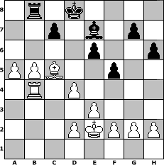 Partie-Notation im PGN-Format [Event "Krampusturnier 2"] [Site "www.mySchach.de"] [Date "2014.12.01"] [Round "1"] [White "FrankB"] [Black "faustballer"] [ECO "D02"] [WhitemyELO "1726"] [BlackmyELO "1563"] [Result "1-0"] [TimeControl "10/1728000"] [WhiteDays "20"] [BlackDays "20"] [MySchachNr "96943"] 1. d4 d5 2. Nf3 Nc6 3. e3 a6 4. c4 dxc4 5. Bxc4 h6 6. O-O Nf6 7. Nc3 b5 8. Be2 Bb7 9. a3 e6 10. b4 Be7 11. Bb2 O-O 12. Rc1 Qe8 13. Qc2 Rd8 14. Rfd1 Nb8 15. Ne5 Nc6 16. Nxb5 axb5 17. Nxc6 Nd5 18. Bxb5 Bxc6 19. Bxc6 Rd7 20. Bxd7 Qxd7 21. Qc6 Qxc6 22. Rxc6 Rc8 23. Rdc1 Bd8 24. b5 Rb8 25. a4 Nb4 26. R6c3 Na2 27. Rc4 Nxc1 28. Bxc1 Kf8 29. Ba3+ Ke8 30. Bc5 Kd7 31. Rb4 Be7 32. a5 Kd8 33. Kf1 f5 34. Ke2 1-0 Stellungs-Notation im FEN-Format 1r1k4/2p1b1p1/4p2p/PPB2p2/1R1P4/4P3/3PKPPP/8 - - - 1 34 Geschlagene Figuren Weiss: Geschlagene Figuren Schwarz: Klicken Sie auf eine geschlagene Figur um den gewünschten Zug darzustellen!