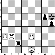 Partie-Notation im PGN-Format [Event "Schneekönigin"] [Site "www.mySchach.de"] [Date "2018.02.15"] [Round "1"] [White "Gauss1233"] [Black "Achimkogge"] [ECO "D10"] [WhitemyELO "1368"] [BlackmyELO "1365"] [Result "1/2-1/2"] [TimeControl "10/2592000"] [WhiteDays "195"] [BlackDays "200"] [MySchachNr "111410"] 1. d4 d5 2. c4 c6 3. cxd5 Qxd5 4. Nf3 Bf5 5. Nc3 Qd8 6. Bf4 Qa5 7. Qb3 b5 8. g3 e6 9. e3 Bb4 10. Rc1 Be4 11. Bg2 Be7 12. O-O Bd3 13. Rfe1 Nd7 14. Red1 Bc4 15. Qc2 Bf6 16. b3 Bd5 17. Nxd5 cxd5 18. Qc6 Qb6 19. Qxa8+ Bd8 20. Qc6 Qxc6 21. Rxc6 Ne7 22. Ra6 Bb6 23. Ra3 O-O 24. Bd6 Re8 25. b4 Nc6 26. Ne5 Ndxe5 27. dxe5 Rd8 28. Bc5 Bxc5 29. bxc5 a5 30. f4 g6 31. Rb3 b4 32. a3 a4 33. Rbb1 b3 34. Bf1 Rb8 35. Rb2 h5 36. Be2 Kg7 37. Kg2 f6 38. Kf3 fxe5 39. fxe5 Nxe5+ 40. Kg2 Kh6 41. Rd4 Ra8 42. Bb5 Ra5 43. Rb4 Kg5 44. Bxa4 Nd3 45. h4+ Kh6 46. R2xb3 Nxc5 47. Rc3 Nxa4 48. Rc6 e5 49. Rd6 Nc3 50. Rb3 Ne4 51. Rdb6 Rc5 52. R6b5 Rc2+ 53. Kg1 Nxg3 54. Rxd5 Ne2+ 55. Kh1 Ng3+ 56. Kg1 Nf5 57. Rxe5 Nxh4 58. Reb5 Nf3+ 59. Kf1 Nd2+ 60. Ke1 Nxb3 61. Rxb3 1/2-1/2 Stellungs-Notation im FEN-Format 8/8/6pk/7p/8/PR2P3/2r5/4K3 - - - 0 61 Geschlagene Figuren Weiss: Geschlagene Figuren Schwarz: Klicken Sie auf eine geschlagene Figur um den gewünschten Zug darzustellen!